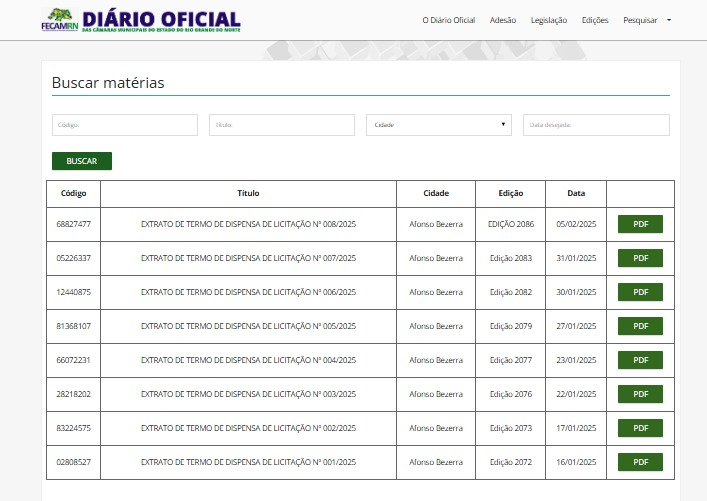 Fonte: Diário oficial