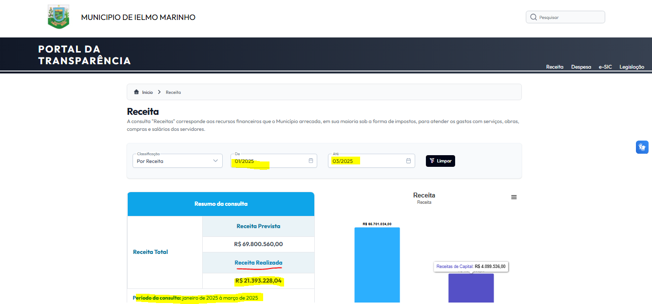 Em apenas 90 dias, a arrecadação da Prefeitura de Ielmo Marinho registrou um crescimento expressivo em relação ao ano passado. De janeiro a março de 2024, o município arrecadou R$ 21.393.228,04, um aumento de mais de R$ 2 milhões em comparação com o mesmo período de 2023, quando foram arrecadados R$ 19.387.748,35.